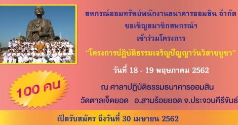 ขอเชิญสมาชิกเข้าร่วมปฏิบัติธรรมเจริญปัญญาวันวิสาขบูชา
