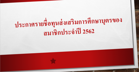 ประกาศรายชื่อทุนส่งเสริมการศึกษาบุตรของสมาชิกประจำปี 2562